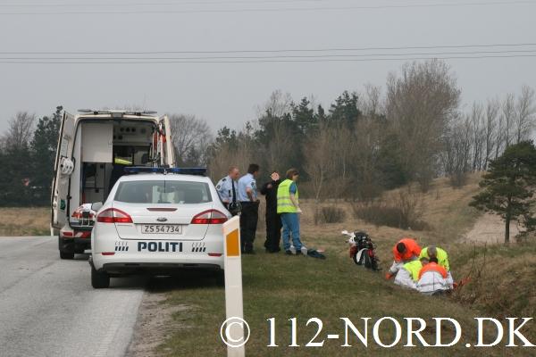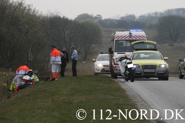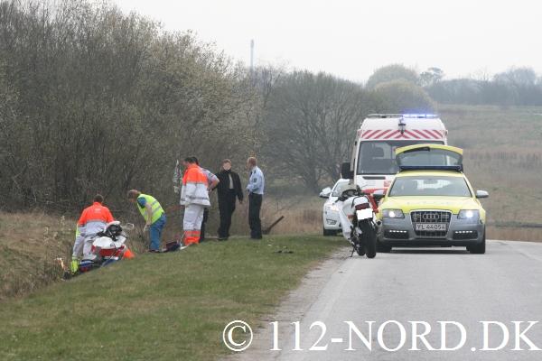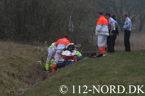 13/4 2009 15:22 Motorcykelist kørt af vejen i Nørresundby.